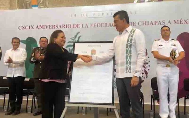 “Por voluntad propia, en un plebiscito, las y los chiapanecos decidieron este pacto de unión con la gran nación mexicana y, a 199 años, hemos evolucionado, sobre todo, en los últimos años del gobierno de la Cuarta Transformación, porque ahora sí hay una verdadera política de igualdad de género y respeto a los derechos humanos. Nos sentimos muy orgullosos de caminar con los principios de igualdad, libertad e independencia de la patria mexicana”, acotó.