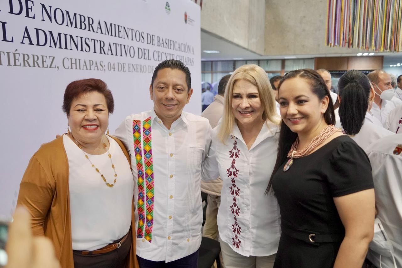 En el marco de la Entrega de Nombramientos de Basificación a Personal Administrativo del Colegio de Estudios Científicos y Tecnológicos del Estado de Chiapas (Cecytech) que encabezó el gobernador Rutilio Escandón Cadenas, el diputado federal Jorge Llaven Abarca reconoció las políticas públicas del mandatario estatal para garantizar los derechos constitucionales y laborales de las y los trabajadores de nuestro estado.