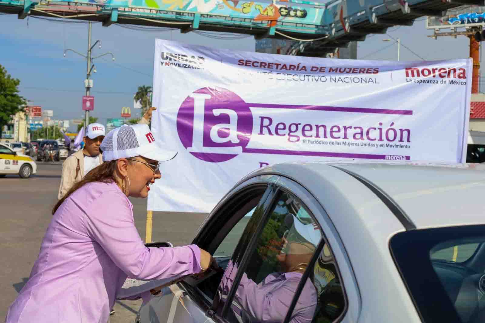 La Secretaria de Mujeres de Comité Ejecutivo Nacional de Morena saludo y entrego mano a mano la publicación impresa La Regeneración recibiendo gran aceptación de las mujeres que le agradecían y saludaban.